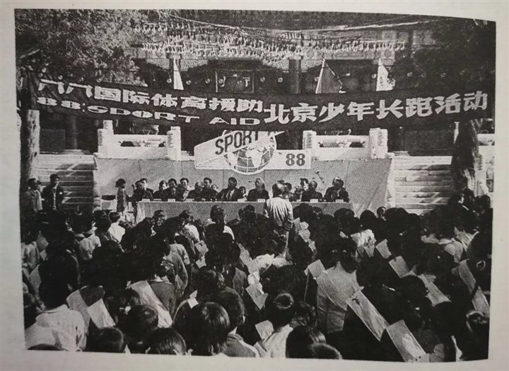 1988年8月24日上午,在北京市少年宫组织了1300多名少年参加的1000米赛跑活动。9月11日晚,在天安门广场大会堂东门外举行了2000多人参加的中长跑活动。英国大使馆的一些外宾也参与了长跑。同时,在广场上还表演了武术、老年健身操等节目。整个活动持续到23点40分结束,使“88国际体育援助活动”达到了高潮。