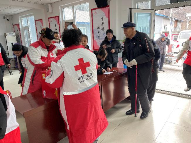情系困难群体,传递人道温暖。在强化应急保障的同时,红十字志愿者也将关爱目光投向了需要帮助的群体。近日,北京市红十字风之彩志愿服务大队走进房山区十渡镇马安村,开展志愿服务活动。志愿者们深入走访了村里80岁以上的高龄老人以及残疾人家庭,与他们亲切交谈,详细了解他们的身体、生活状况以及面临的困难。除了送上大米、面粉、食用油等生活必需品,志愿者们还带去了自己亲手一针一线编织的围巾,为老人们在寒冬中增添了一份别样的暖意。“谢谢你们总惦记着我们,这围巾真暖和,心里更暖和!”一位老人拉着志愿者的手,连连道谢。此次活动不仅给予了困难家庭物质上的帮助,更送上了精神上的慰藉与社会的关怀,生动诠释了红十字会人道关爱的宗旨。