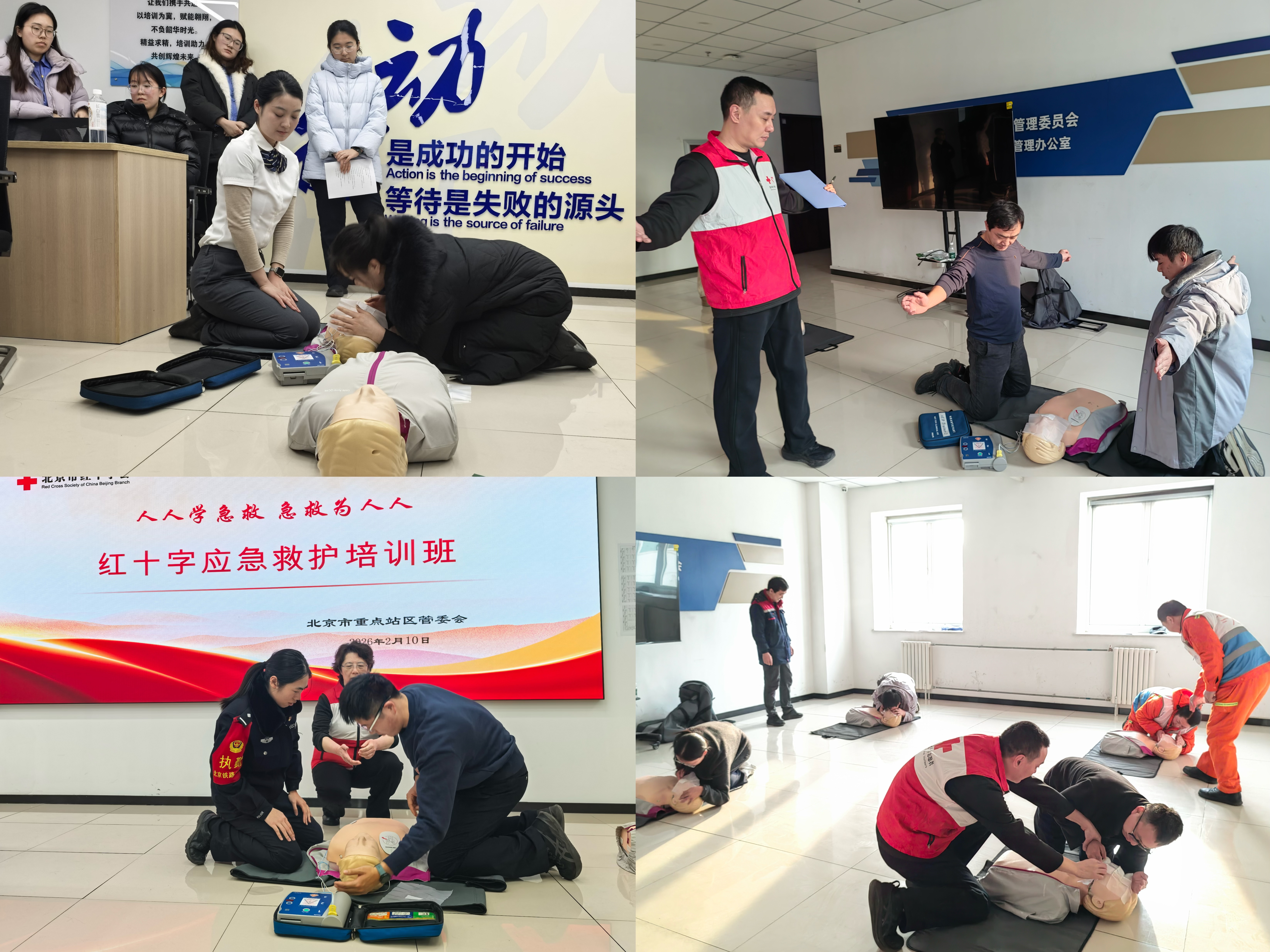 随着2026年春运启动,北京市红十字会与北京重点站区管理委员会共同开展“护航春运·‘救’在身边”主题活动,分别于1月28日、2月10日至11日走进北京清河站、北京南站等枢纽站点,为站区工作人员开展系统化、场景化的应急救护专题培训。