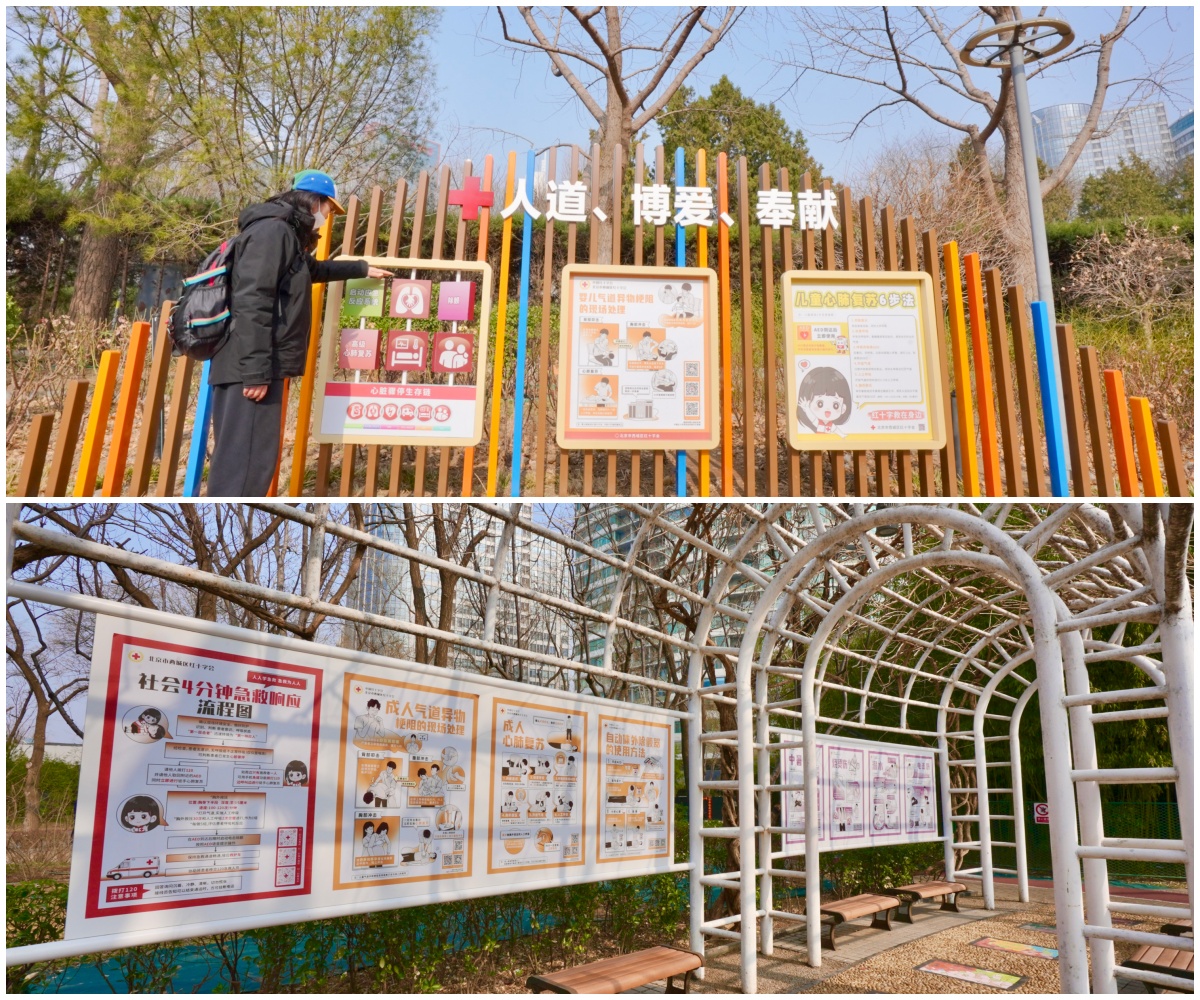 近日,位于马甸桥东北角的德胜街道玫瑰公园焕新亮相。焕新后的玫瑰公园科普设施布局合理、层次清晰,将红十字元素与原有园林景观自然融合,处处传递着“人人学急救、急救为人人”的公益理念。该项目由西城区红十字会携手区园林局、蓟城山水集团共同打造,是构建“西城区社会4分钟急救响应体系试点建设”的重要实践,也是红十字文化融入城市公共空间、急救知识走进市民日常生活的服务阵地,更是传播红十字急救知识、弘扬人道精神的城市公益新地标。