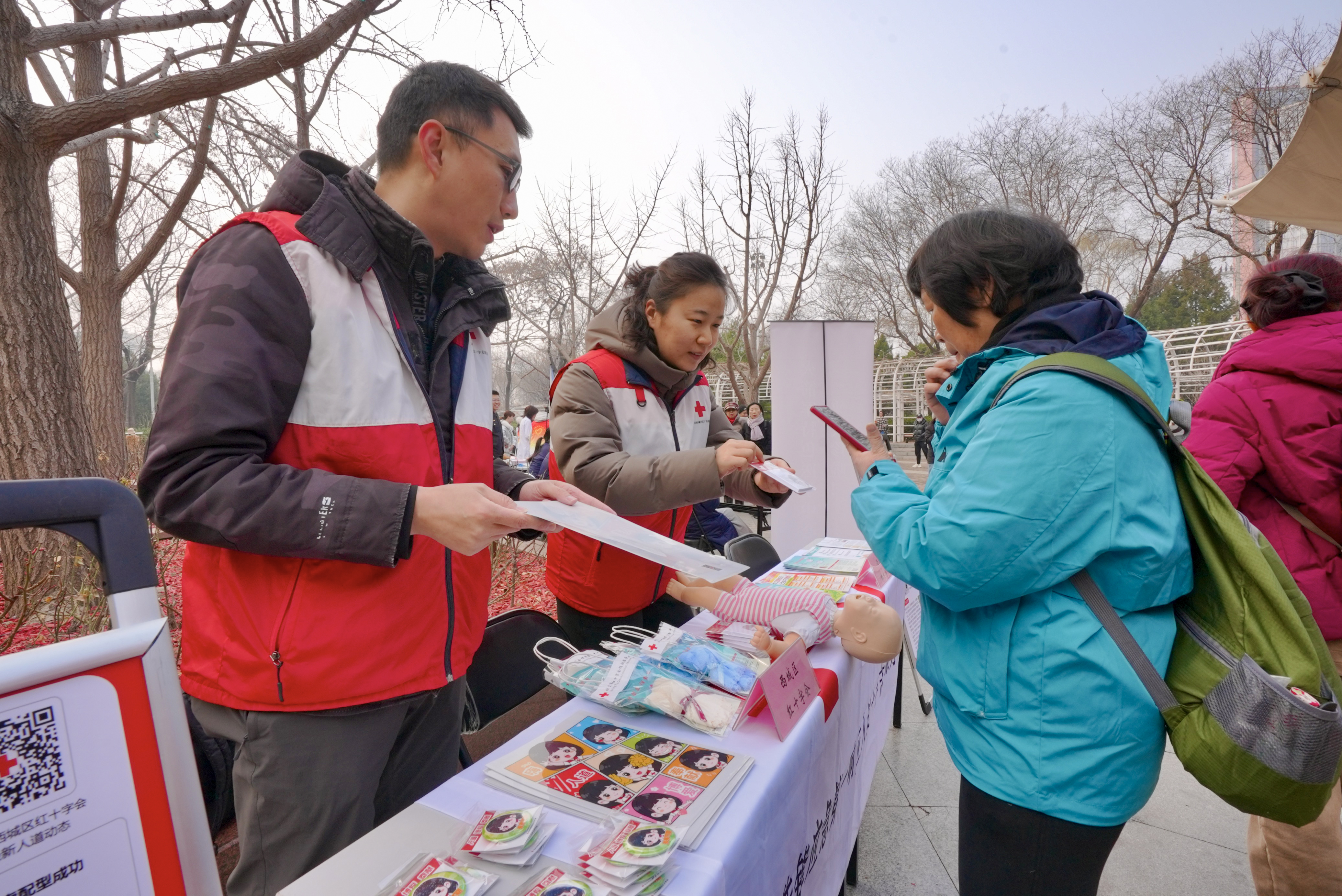 恰逢学雷锋纪念日来临之际,德胜街道在玫瑰公园举办“学雷锋做志愿 共同奋进‘十五五’”志愿服务市集活动。西城区红十字会作为活动重要参与单位,现场开展“西红有约 博爱讲堂”宣传活动,设置“三救三献”知识宣传与急救科普互动体验两大特色区域。参与活动的居民表示,参加急救体验令人印象深刻,公园里新增的红十字知识宣传栏和标语也能让大家随时学到急救要点。