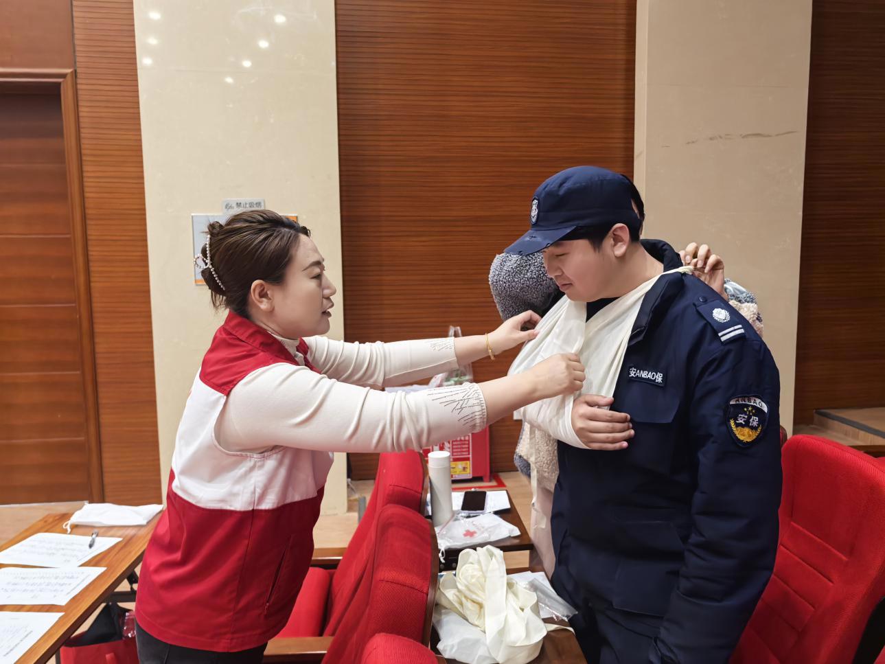 培训中,红十字会讲师用通俗易懂的语言讲解了心肺复苏、AED使用和创伤包扎的基础知识。重点演示了如何判断心跳呼吸骤停、怎样抓住“黄金四分钟”进行有效按压、AED的操作流程以及不同部位出血的止血包扎技巧。在实操环节,参训人员热情高涨,纷纷利用模拟人练习胸外按压、人工呼吸和包扎手法。大家轮流上手,在讲师的耐心指导下反复练习规范动作,力求每一个步骤都准确到位。