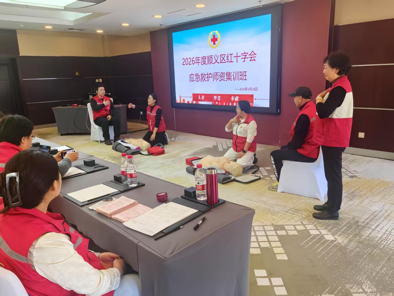为夯实应急救护培训根基、打造专业师资团队,顺义区红十字会组织40余名应急救护师资,开展2026年度应急救护师资集训班。集训期间,市红十字会资深师资深度解读2025年新修订教学大纲,同步开展急救技能实操演练,强化师资教学功底;同时区红十字会围绕红十字进校园工作开展专题调研,收集优化授课方式、丰富课程内容的宝贵建议,统一教学思想、提升专业能力,为全区应急救护培训高质量推进打下坚实基础。