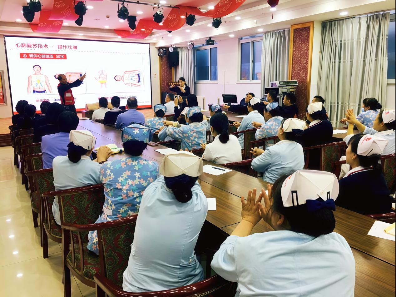 培训团队立足养老机构实际场景,聚焦老年人生理特点与常见突发状况,精心设计培训内容体系。从心肺复苏(CPR)的规范操作流程,到自动体外除颤器(AED)的快速识别与启用,课程紧扣养老场景特点,兼具专业性与实用性。