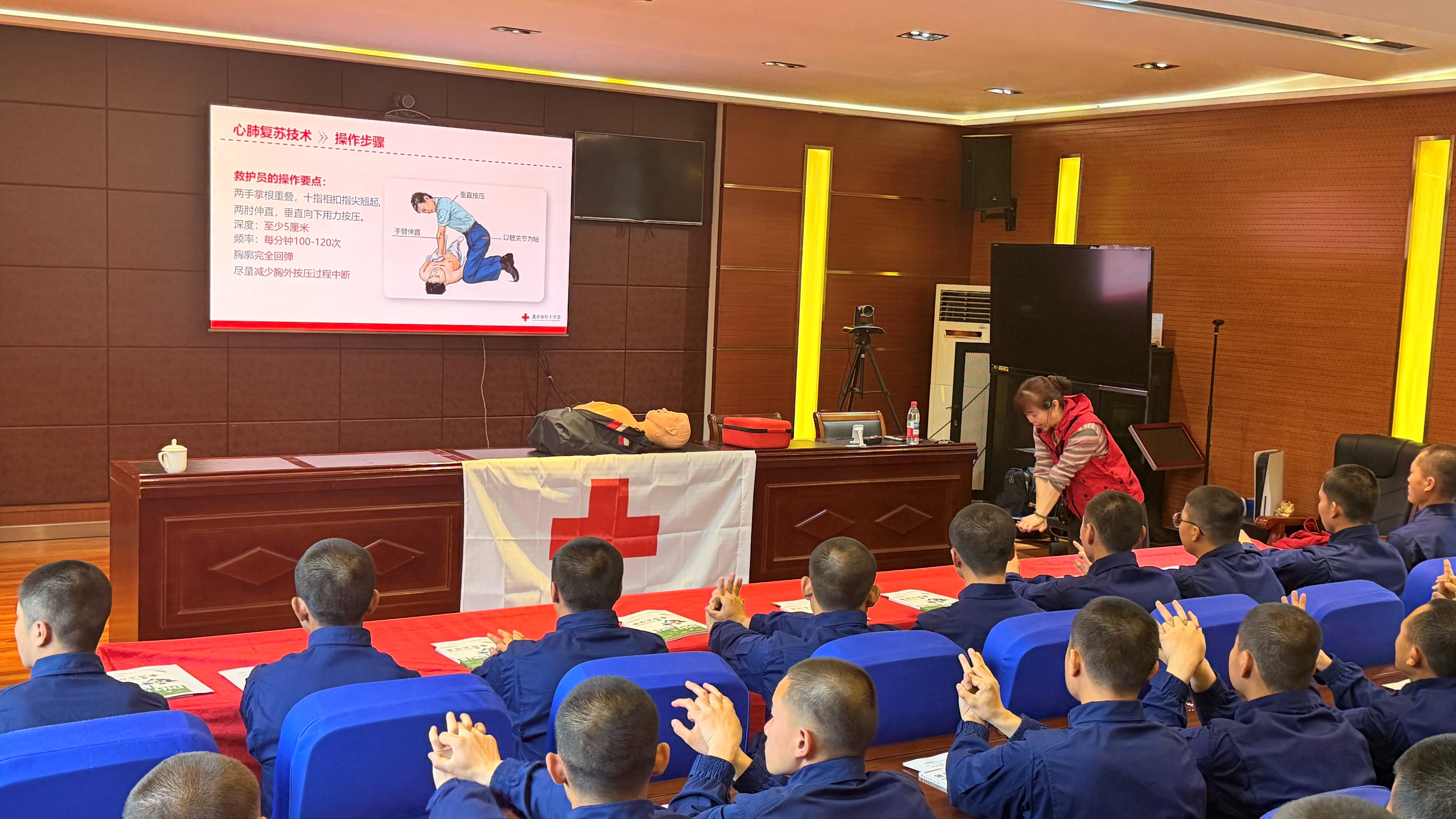 为全面提升一线消防指战员的应急救护能力,近日,朝阳区红十字会走进朝阳区消防救援支队左家庄特勤站,为48名消防指战员开展了心肺复苏技能培训,旨在通过专业教学增强消防人员在救援现场的自救互救能力,进一步保障人民群众的生命安全。
