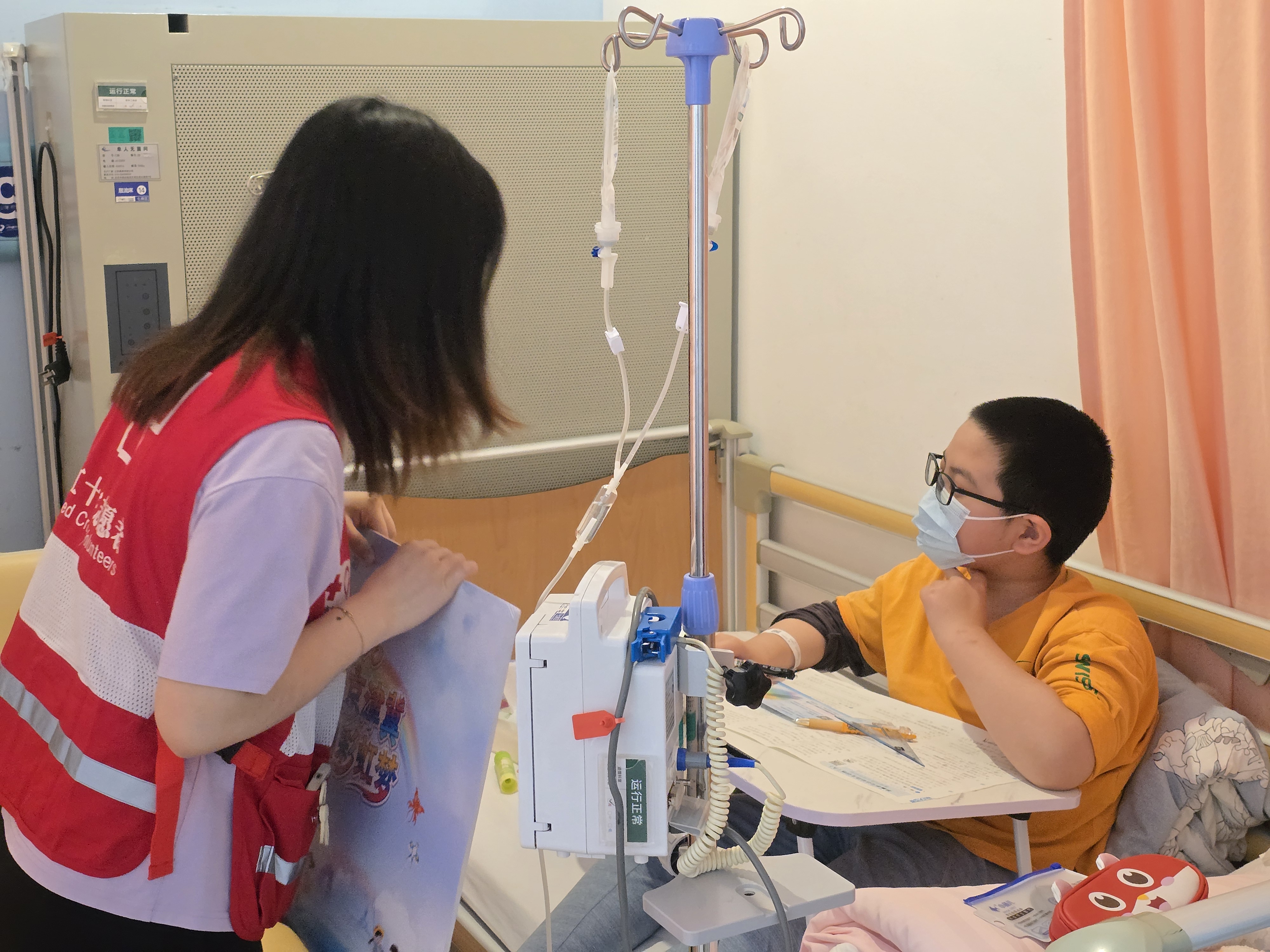 在血液科的病房里,志愿者们通过聊天、做游戏的方式拉近与孩子的距离,消毒水的味道并未掩盖孩子们的欢声笑语。