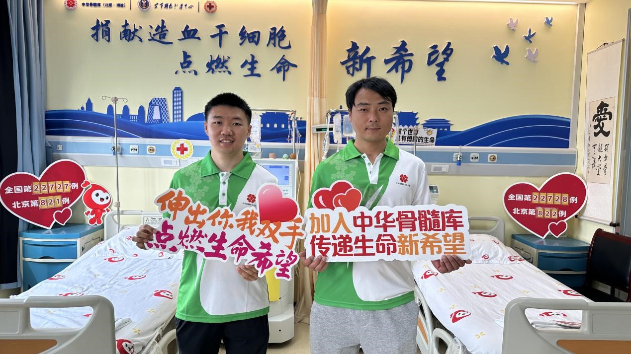 4月24日,驻京部队某医院细胞采集室内暖意融融,两台血细胞分离机同步轻鸣,鲜红的血液在透明管路中缓缓流动。28岁博士研究生小汤、36 岁电焊工小谢,两位来自不同行业、怀揣同样善意的年轻人,同日完成造血干细胞捐献,为素未谋面的血液病患者送去重生希望,用平凡身躯扛起生命重托,书写跨越血缘的生命赞歌。
